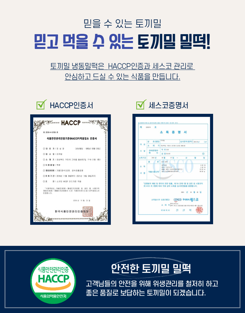 HACCP인증 획득한 토끼밀 냉동밀떡