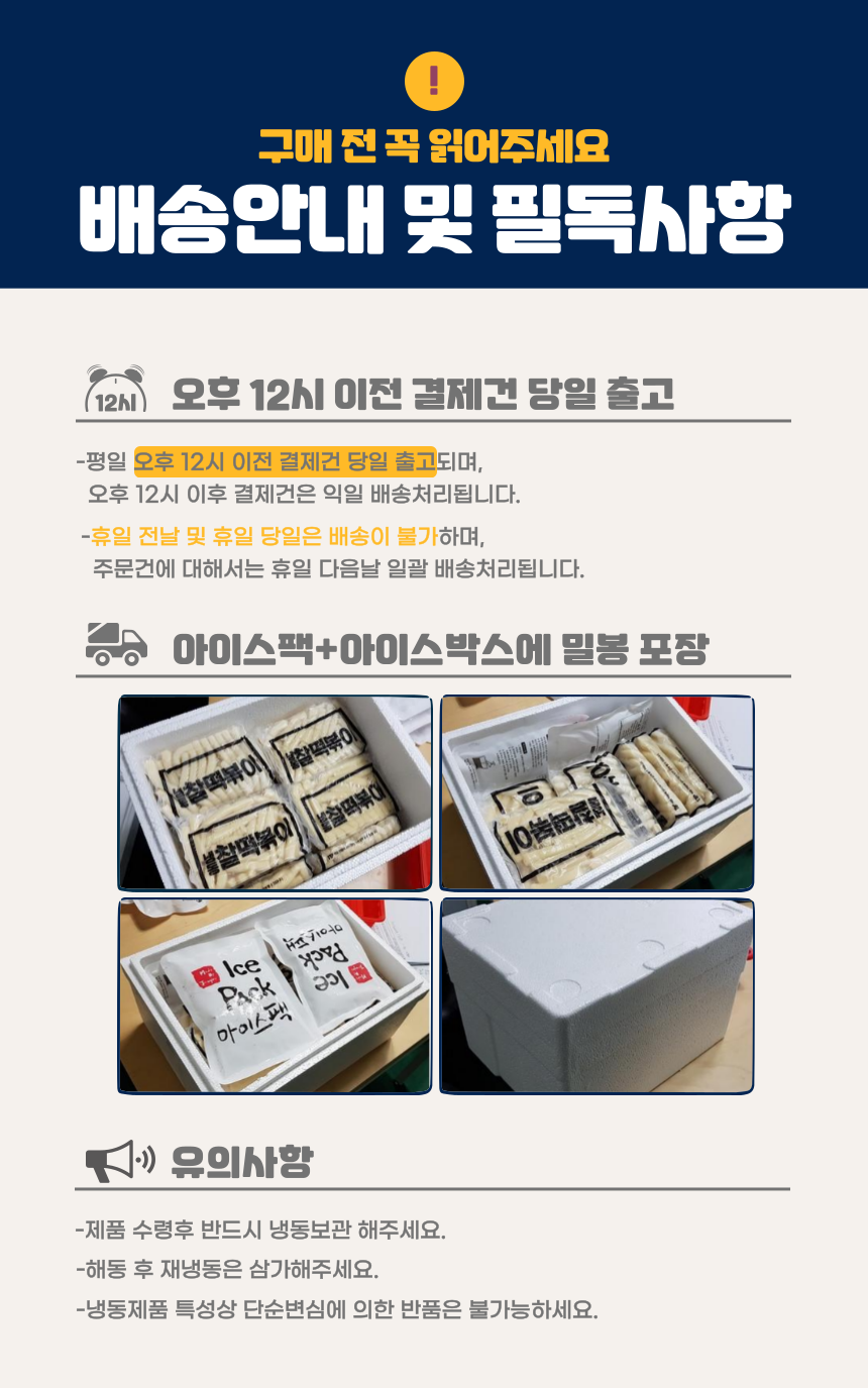 아이스박스와 아이스팩을 이용해 안전하고, 신속한 당일배송 됩니다.